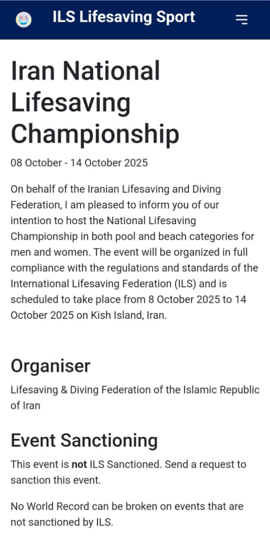 مسابقات نجاتغریق قهرمانی کشور ۱۴۰۴ ایران در تقویم فدراسیون جهانی نجاتغریق (ILS) ثبت شد.